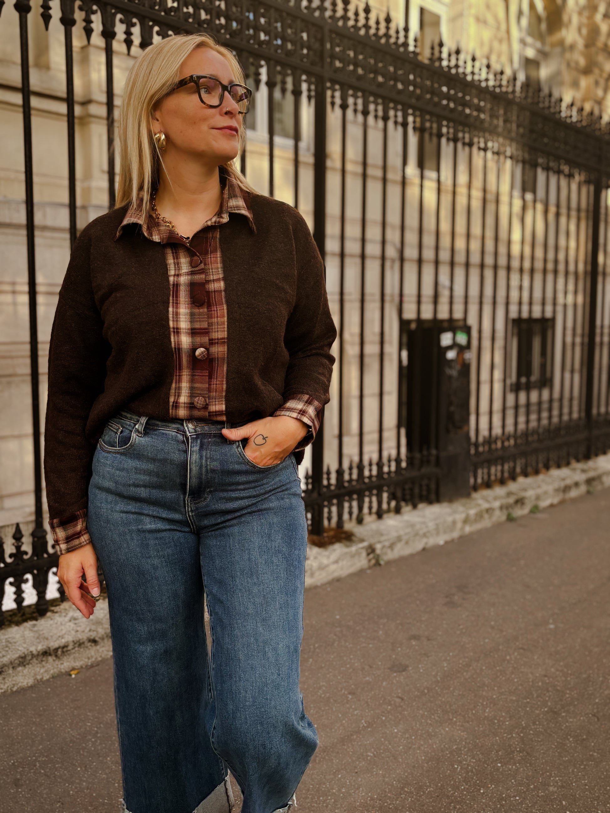 Gilet brun avec motif à carreaux