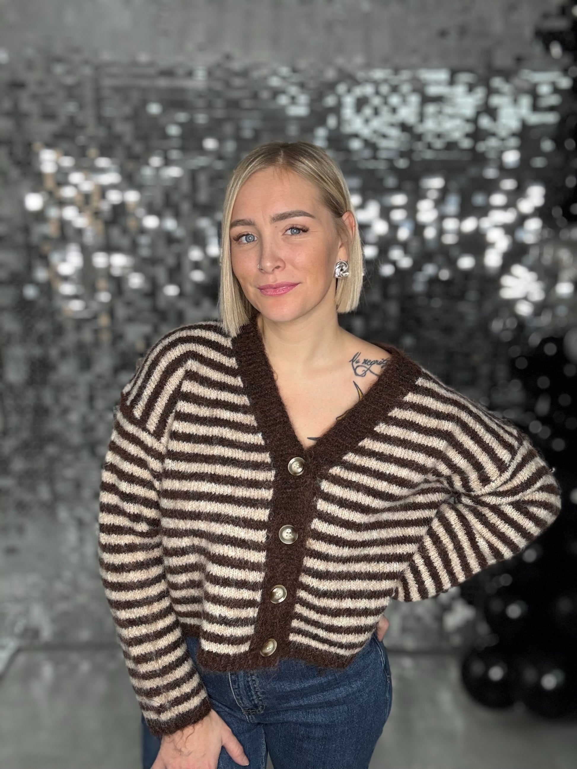 Gilet brun motif rayés