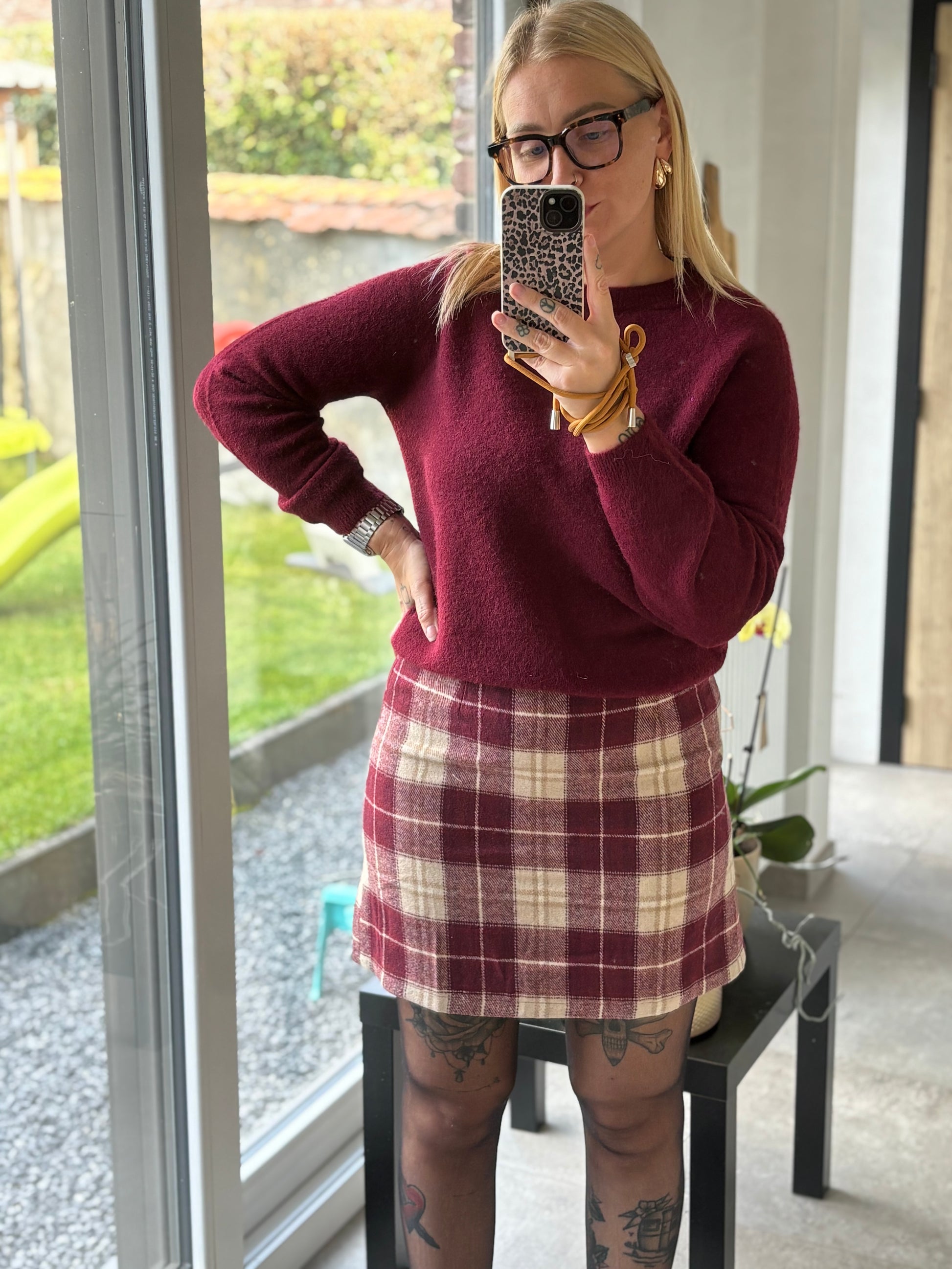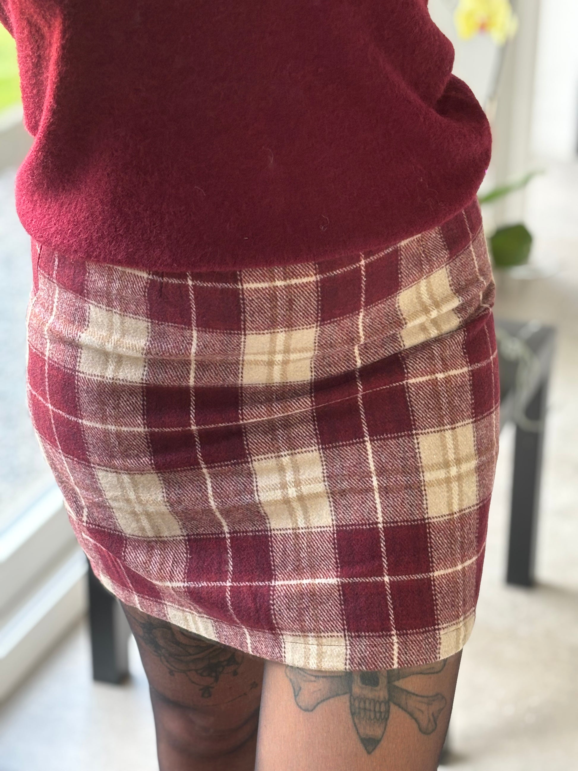 Jupe à carreaux tons bordeaux