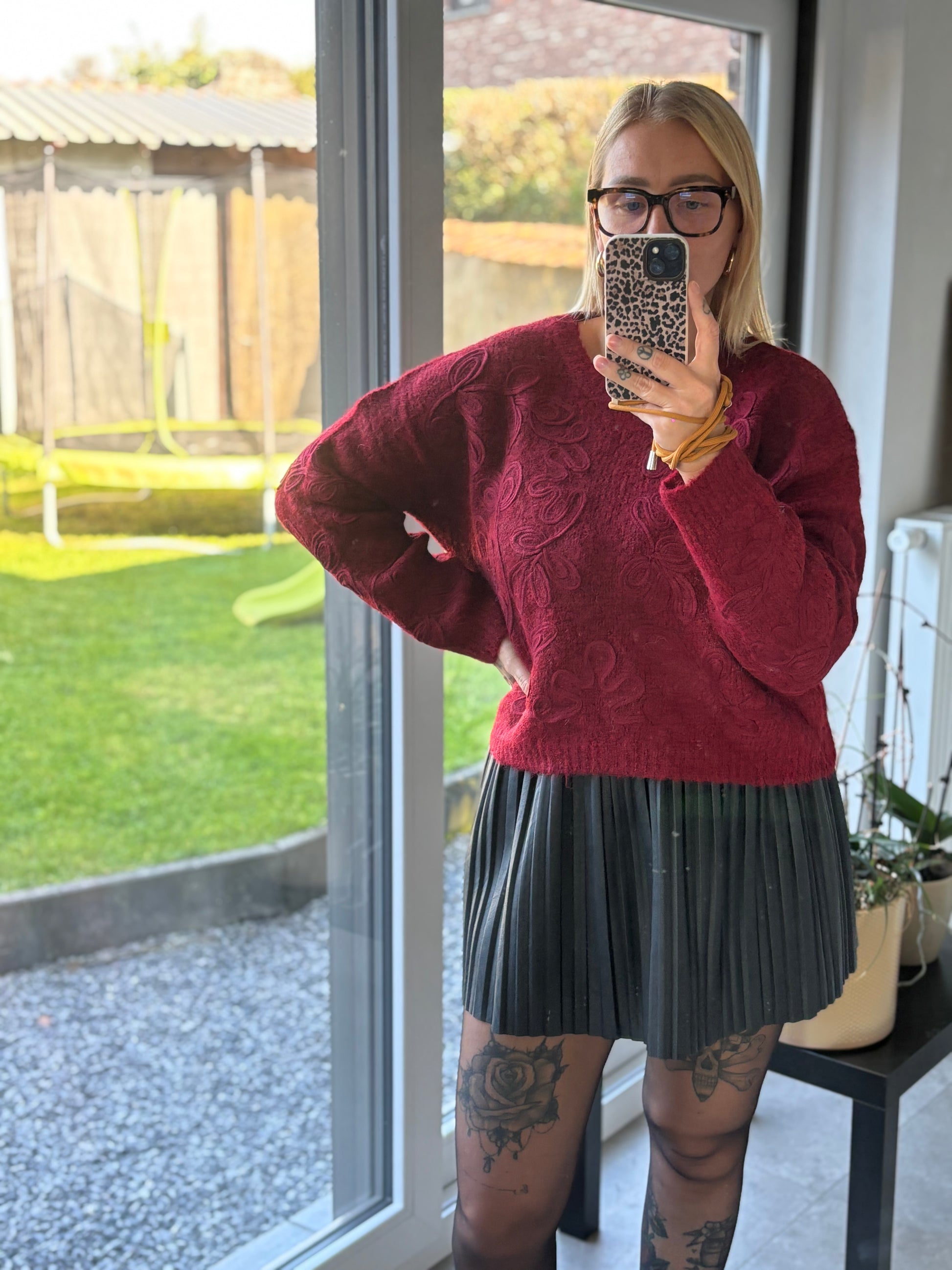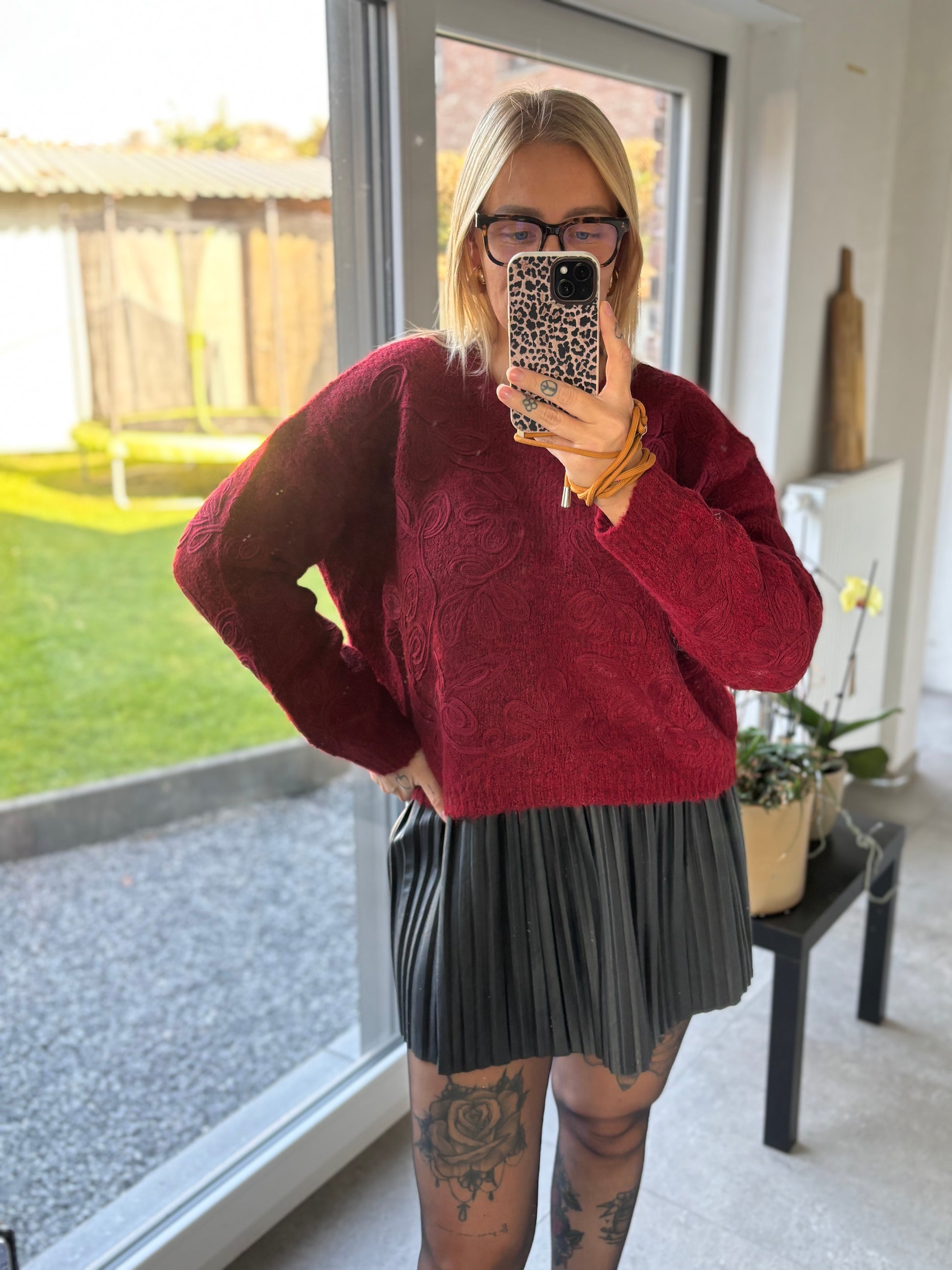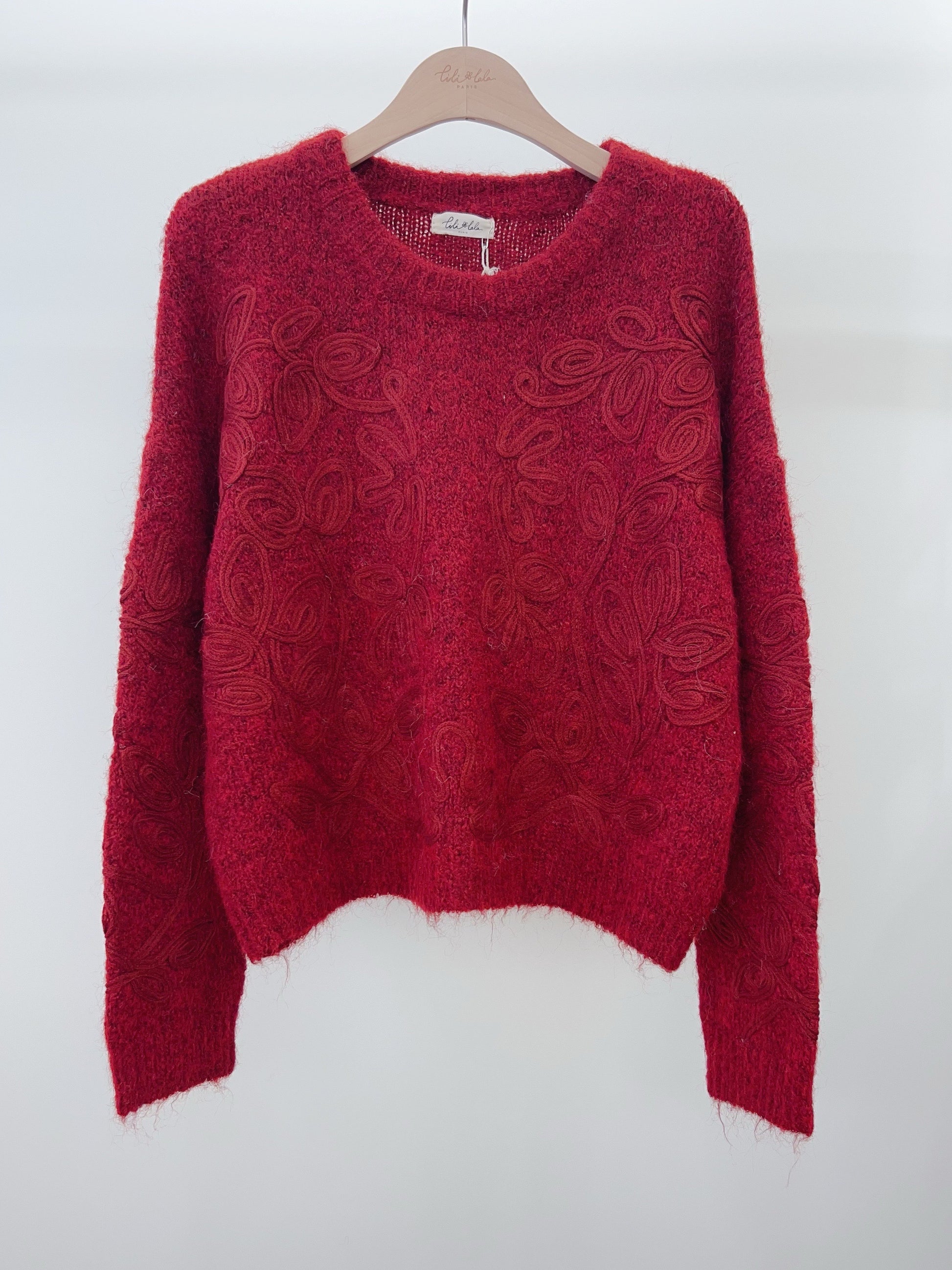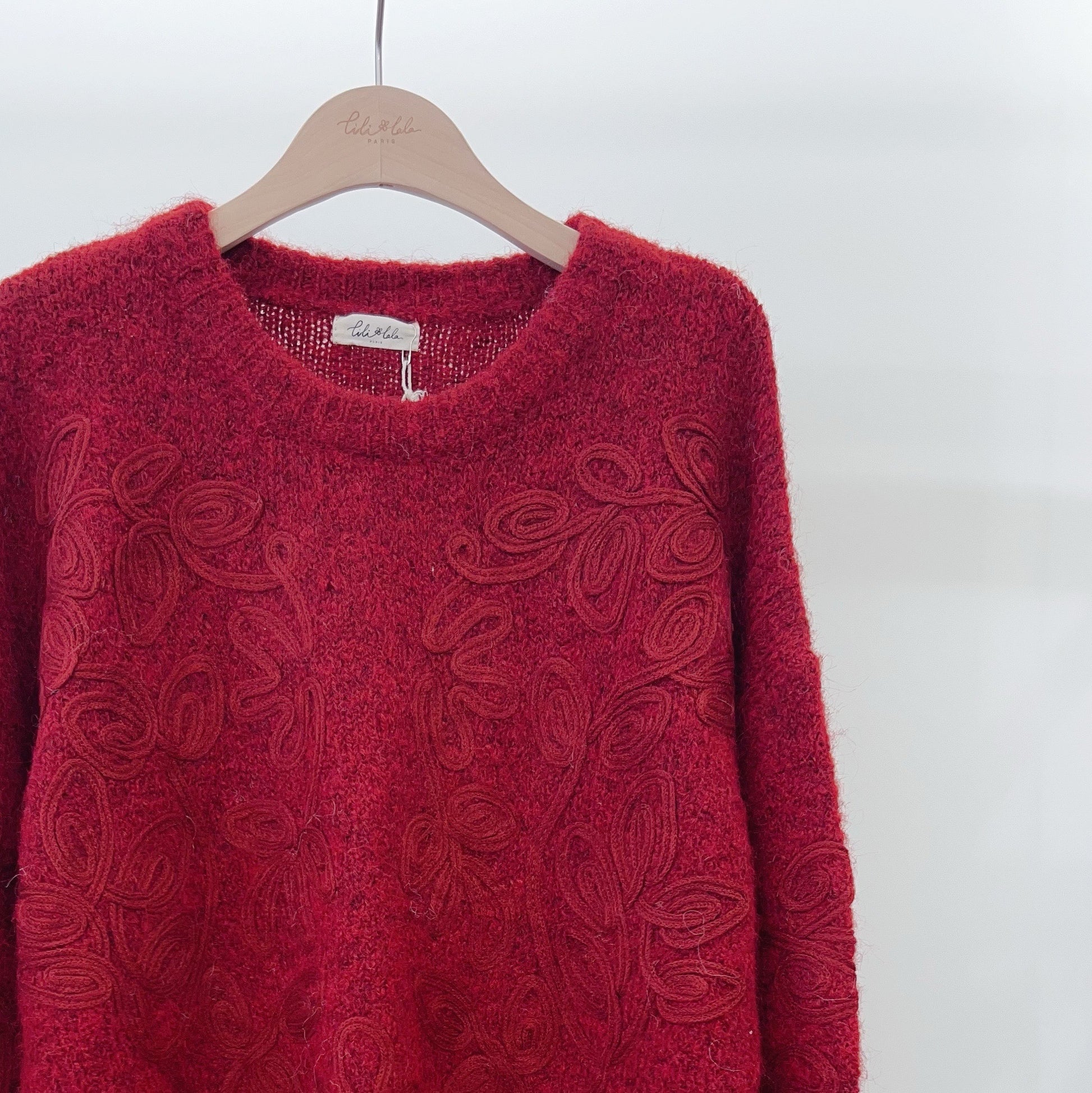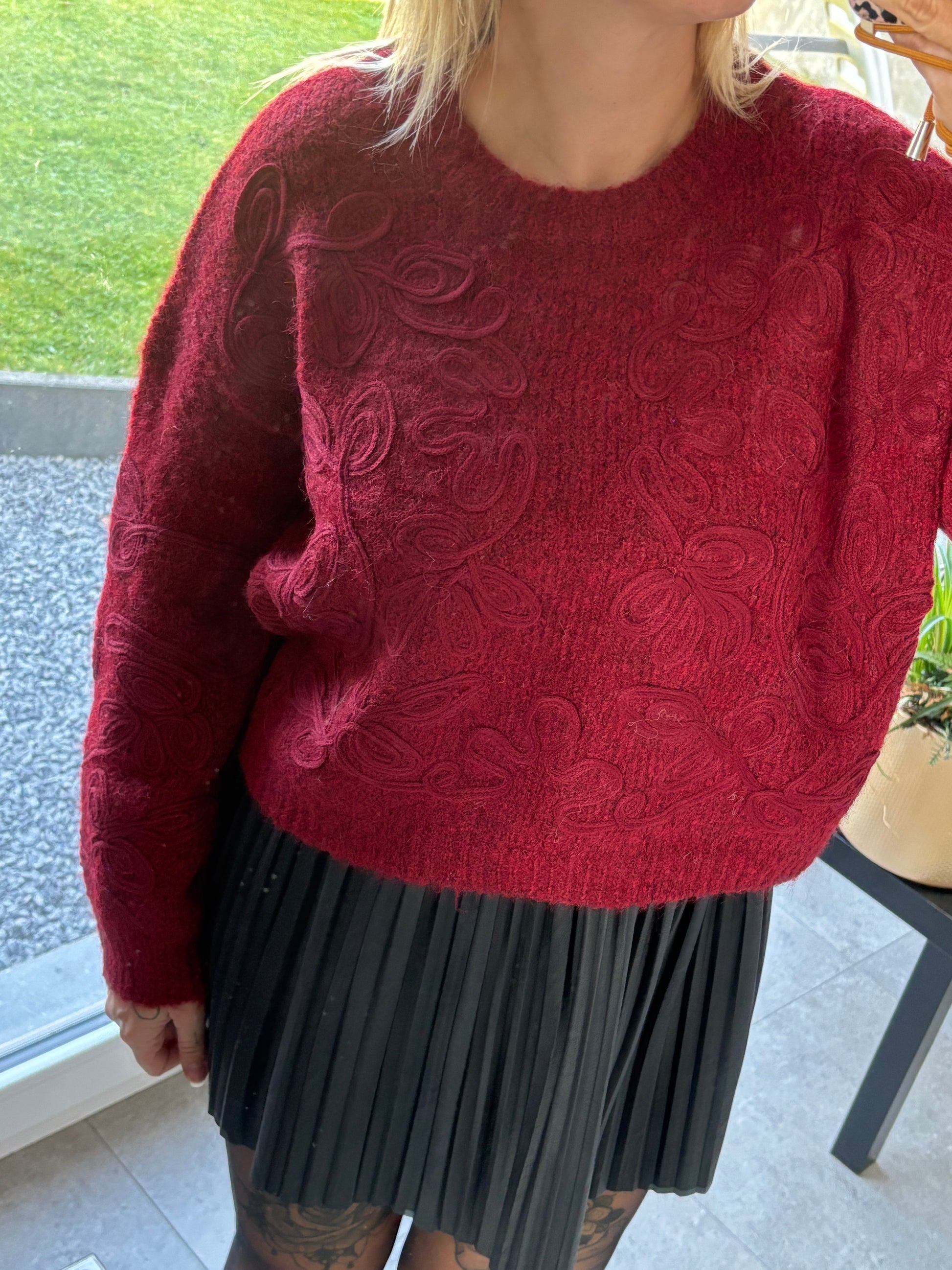 Pull à motif bordeaux ( rouge) avec détails brodés