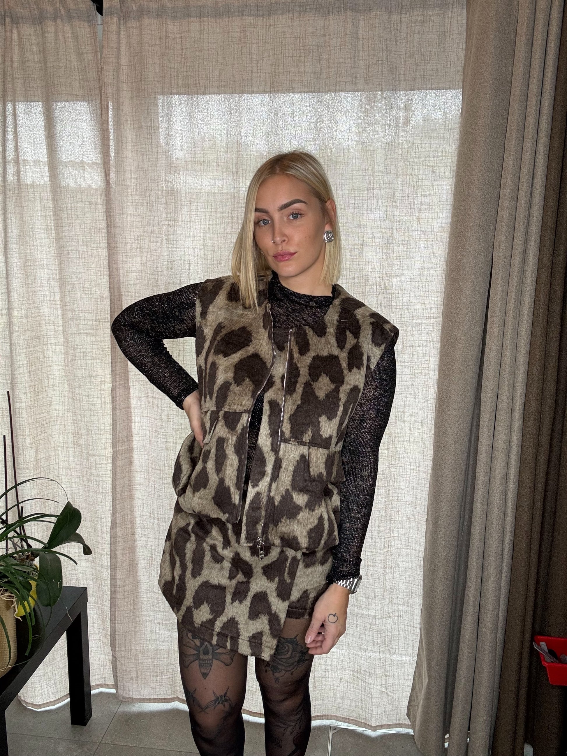 Jupe short léopard « taupe »